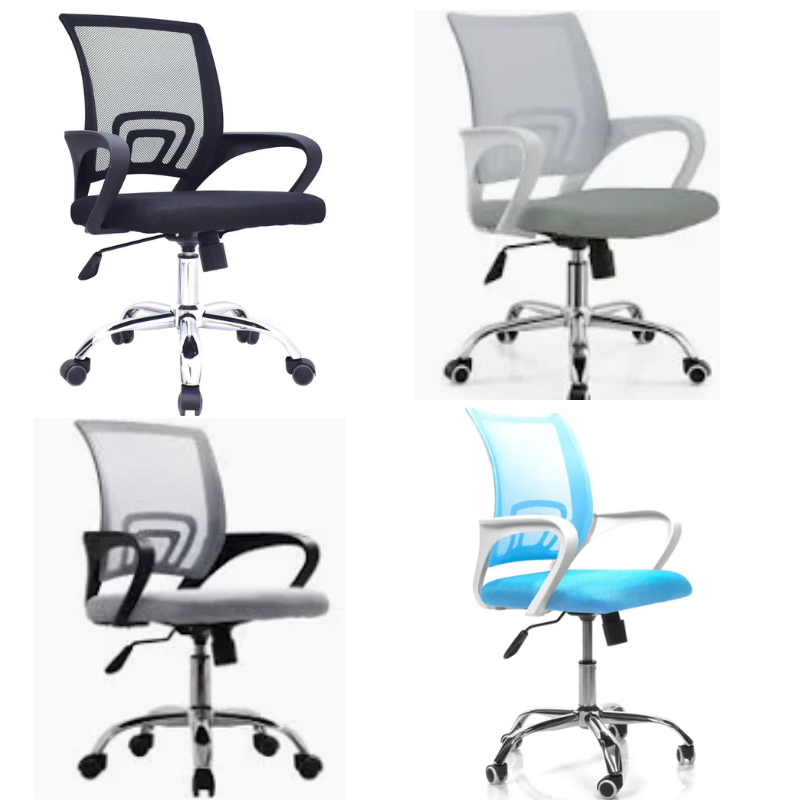 silla giratoria ejecutiva, asiento acolchado y tapizado en malla nylon, espaldar en malla nylon con marco de polipropileno y soporte lumbar, reposabrazos fijas, base de metal cromado, altura regulable con sistema basculante. colores disponibles: negro, gris, gris/negro, turquesa/blanco.