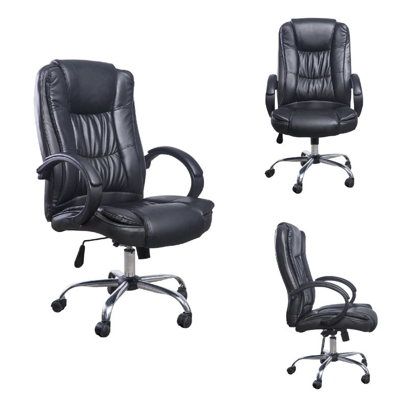 Tapiz ecocuero con soporte lumbar, mecanismo LAP doble palanca, brazos fijos de nylon acolchados y tapizados, base cromada, garruchas de nylon
